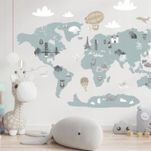 Sienų lipdukas PASAULIS suteiks ne tik jaukumo ir žaismingumo jausmą vaiko kambaryje, bet ir bus puikus edukacinis elementas.
