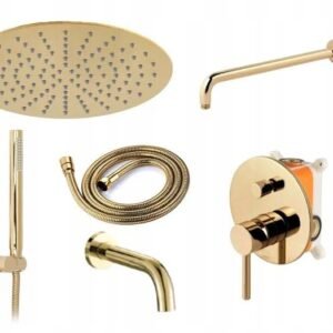 LUNGO GOLD vonios ir dušo komplektas – elegancijos ir kokybės derinys, praturtinantis jūsų vonios interjerą. Auksinė apdaila užtikrina ilgaamžiškumą ir prabangų dizainą, o inovatyvi „Box“ sistema suteikia paprastą bei patikimą montavimą.