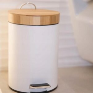 Šiukšlių dėžė BINE – stilingas ir higieniškas sprendimas jūsų vonios kambariui ar tualetui. Derinys iš milteliniu būdu dažyto plieno ir natūralaus bambuko dangčio suteikia elegancijos, o pedalas leidžia atidaryti dangtį nenaudojant rankų. Vidinis indas su rankena – dar daugiau patogumo kasdienai.