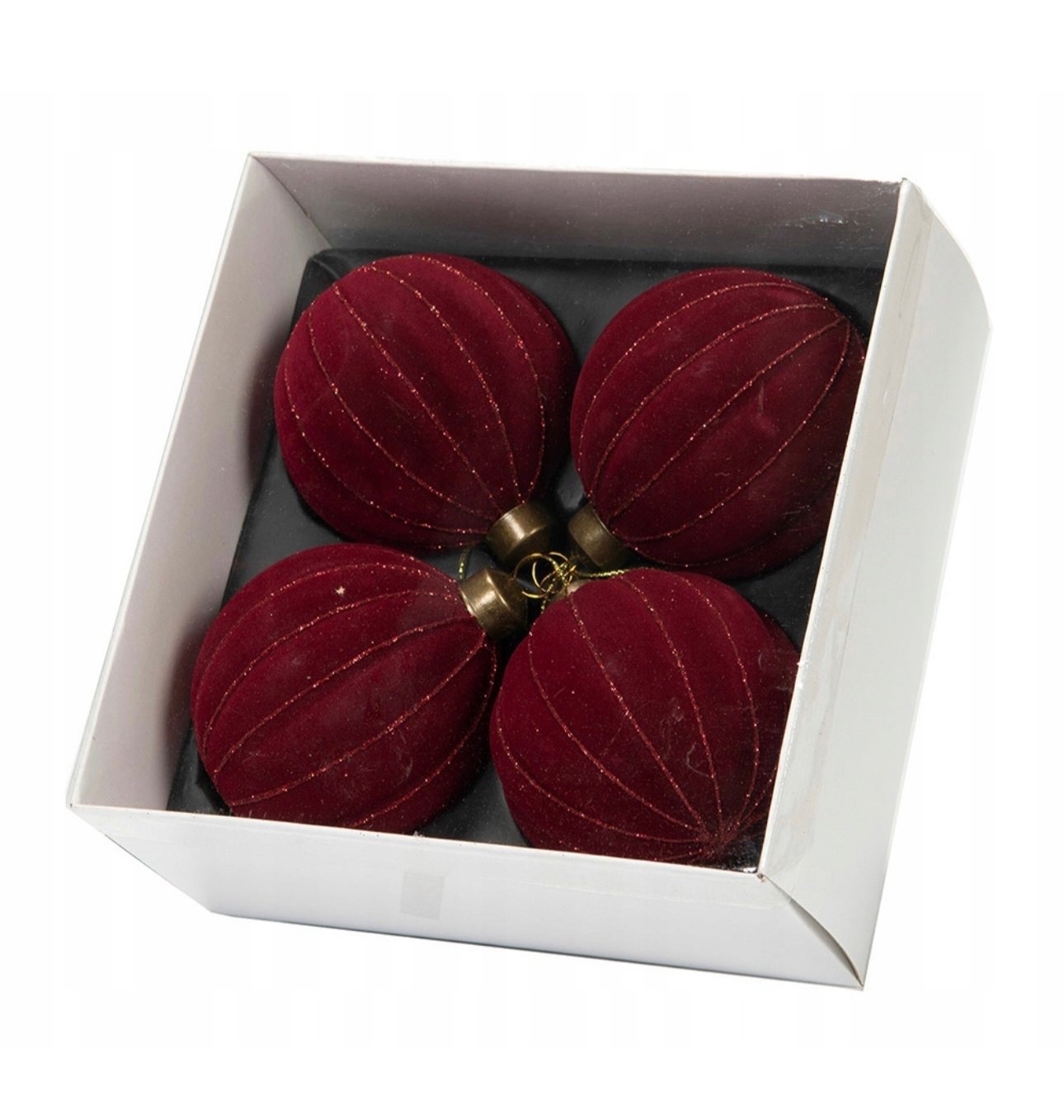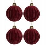 Aksominis paviršius ne tik malonus akiai, bet ir šviesoje sukuria šiltą, jaukų spindesį, paverčiantį eglutę tikru šventės centru. Šie žaisliukai tobulai dera tiek prie tradicinių auksinių ar raudonų dekoracijų, tiek prie modernesnių šventinių kompozicijų. Rinkinį sudaro keturi unikalūs burbulai – elegantiškas pasirinkimas tiems, kurie vertina kokybę ir laikui nepavaldų grožį.