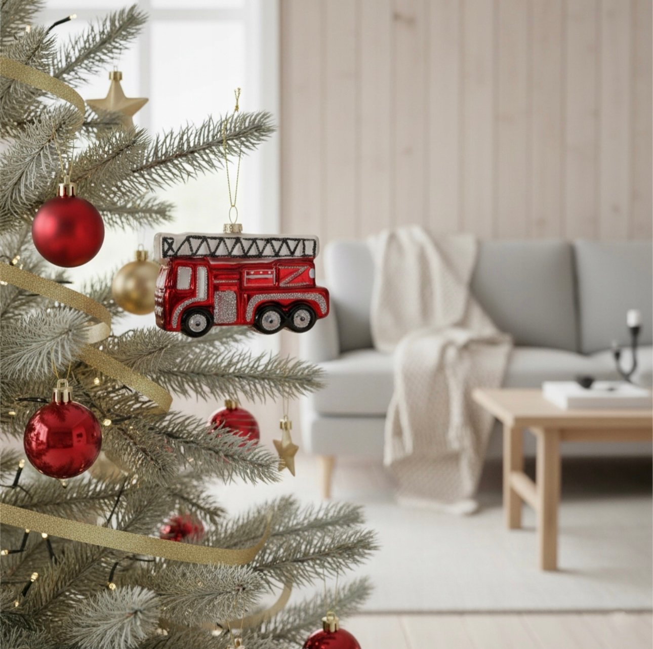 Rankų darbo kalėdinis žaisliukas GAISRINĖ – tai ne tik eglutės puošmena, bet ir tikra šventinė istorija, atgimusi per kruopštų meistrų darbą. Šis stiklinis žaisliukas žavi savo detalių tikslumu ir spindinčiu raudonai sidabriniu deriniu, kuris iš karto traukia akį ir kuria šilumos bei džiaugsmo atmosferą. Kiekviena smulkmena – nuo kopėčių iki blizgių ratų – rankomis nudažyta, todėl kiekvienas žaisliukas yra vienintelis toks, turintis savitą charakterį.