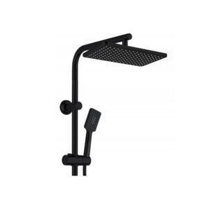 Dušo komplektas SQUA puikiai dera prie šiuolaikinių tendencijų. Funkcinė lentyna kosmetikai ir platus lietaus dušas palengvina naudojimą bei puikiai atrodo.