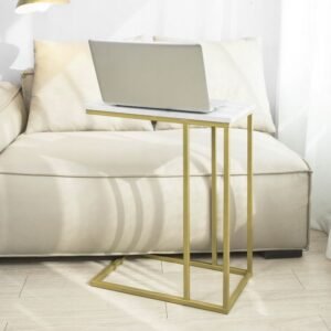 Šoninis staliukas MILIE – subtilus stiliaus ir funkcionalumo derinys. Marmuro imitacijos stalviršis ir auksinis rėmas suteikia interjerui elegancijos, o C formos konstrukcija leidžia patogiai naudoti šalia sofos ar lovos. Puikus pasirinkimas tiems, kurie vertina patogumą ir estetiką viename.