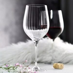 Vyno taurių rinkinys su įspūdingu optiniu efektu, kuris išsklaido šviesą ir suteikia gėrimui išskirtinę spalvą.