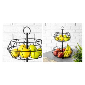 Vaisių indas HORIZONTAL BLACK – dviejų aukštų krepšys iš matinio juodo metalo, skirtas vaisiams, daržovėms ar smulkiems daiktams laikyti. Geometrinė forma ir tamsi spalva puikiai dera įvairaus stiliaus interjeruose. Stabili konstrukcija ir 100% gamintojo garantija užtikrina ilgaamžiškumą ir patikimumą.