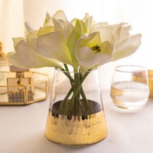Stiklinė vaza GOLDEN GLAMOUR, kuri lydės Jus kiekvieną dieną ir padarys Jūsų kasdienybę gražesnę.